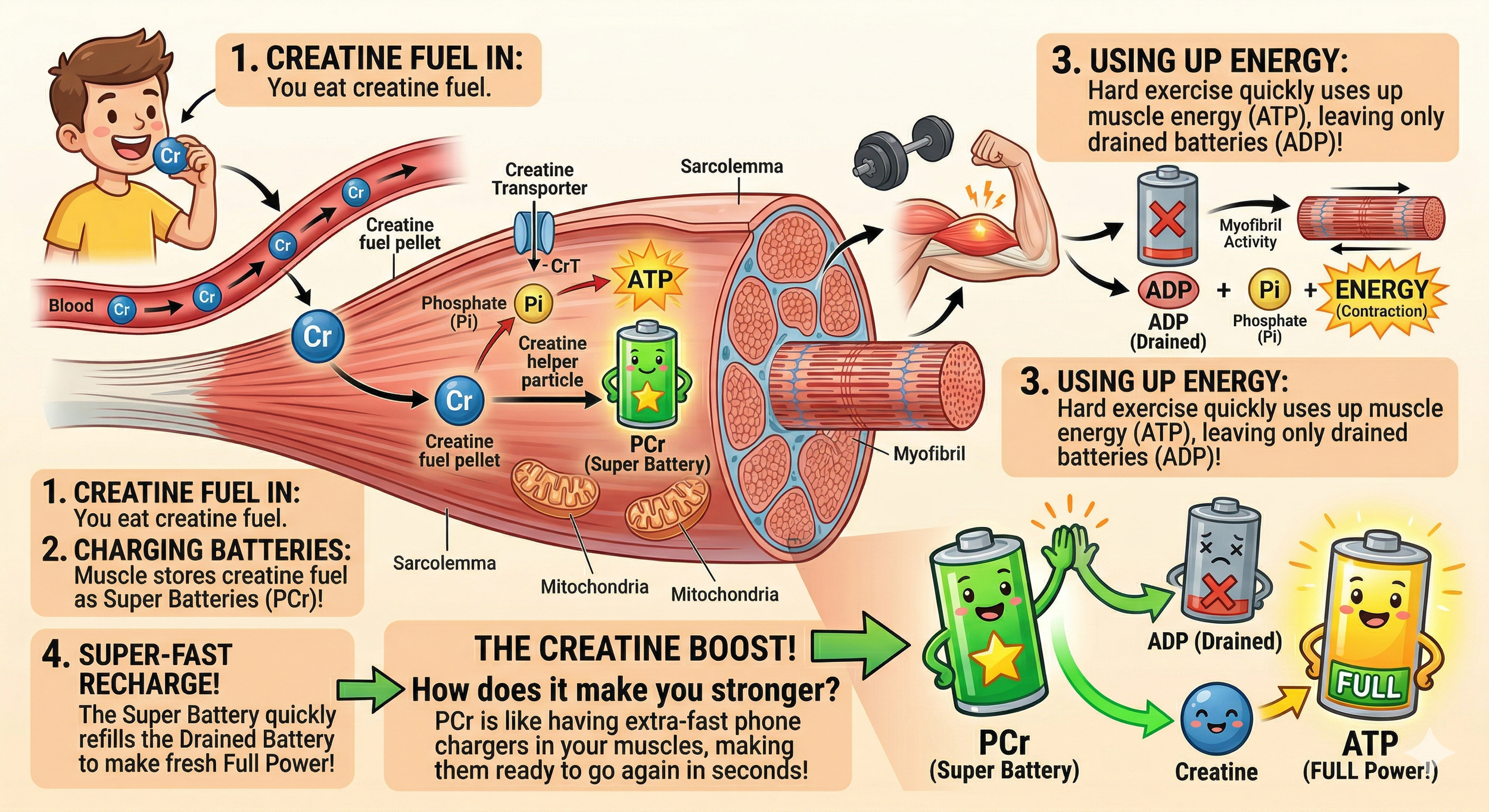 Creatine is a compound that your body naturally produces and is stored in your muscles. It serves as a quick energy source, particularly during high-intensity activities. Although we obtain some creatine from our diet, particularly from meat and fish, the amounts are often insufficient for optimal muscle performance. This is where supplementation comes into play.